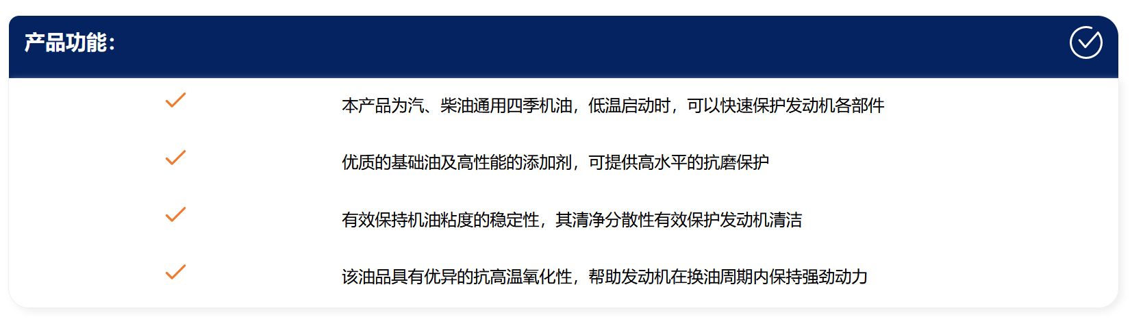 由我们公司提供的“SWEEP”品牌汽车服务用润滑油,完全符合相关国家、行业和相对应的汽车品牌生产厂家的质量标准(以原厂发动机用润滑油品的技术要求或权威第三方检测报告为准)!