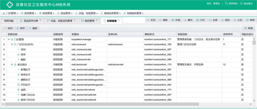 社区医院HIS系统是适合中小规模的医院的日常就诊、药房管理、办公、工作总结、财务核算的综合信息管理系统。涵盖门诊挂号、医生就诊、化验检验、门诊缴费、药房管理、患者档案、财务结算、报表统计等模块。