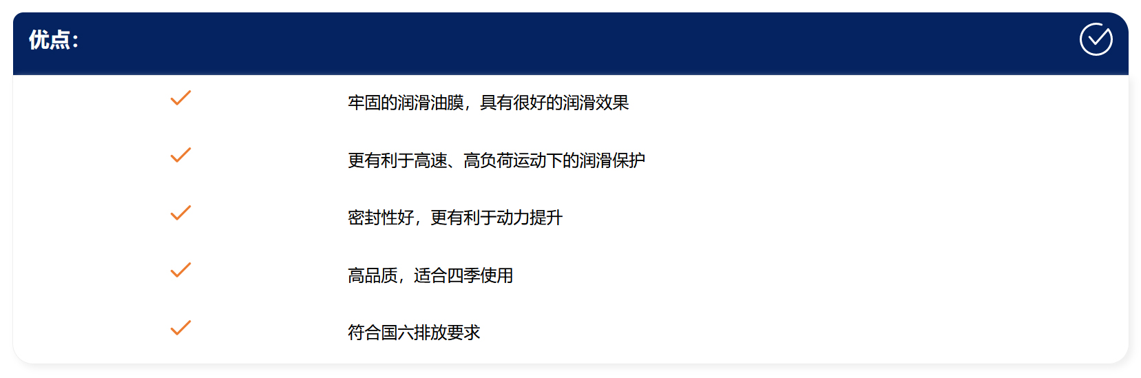 油膜强韧,润滑充足。
