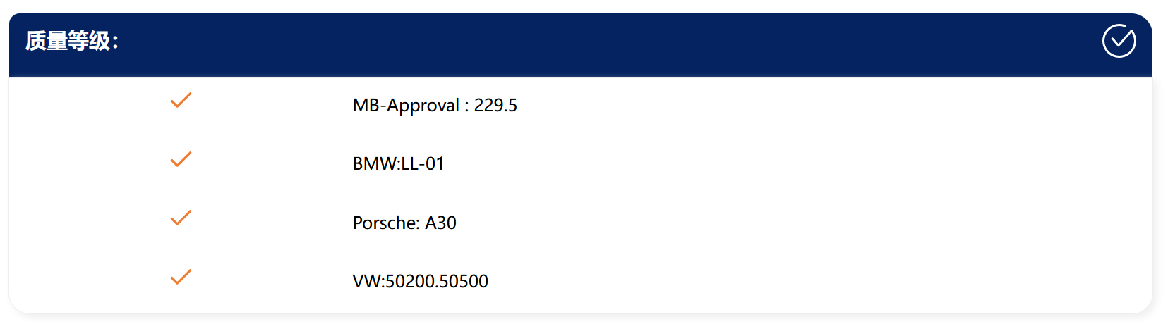 由我们公司提供的“SWEEP”品牌汽车服务用润滑油,完全符合相关国家、行业和相对应的汽车品牌生产厂家的质量标准(以原厂发动机用润滑油品的技术要求或权威第三方检测报告为准)!