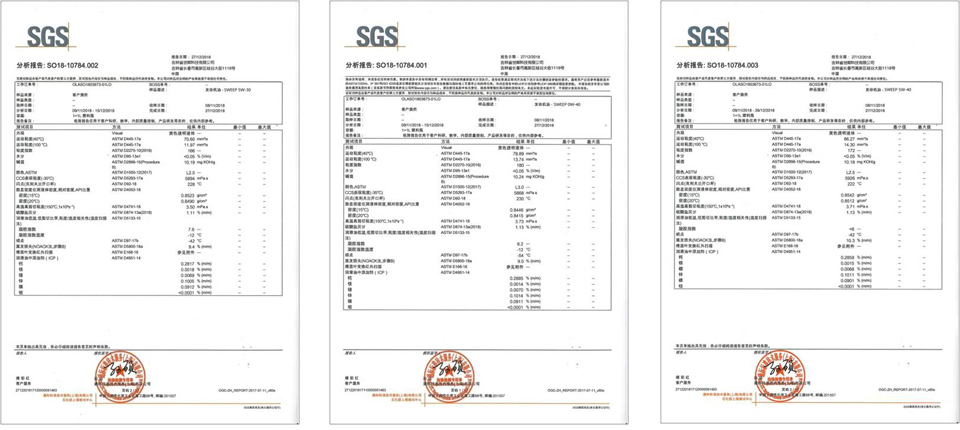由我们公司提供的“SWEEP”品牌汽车服务用润滑油,完全符合相关国家、行业和相对应的汽车品牌生产厂家的质量标准(以原厂发动机用润滑油品的技术要求或权威第三方检测报告为准)!