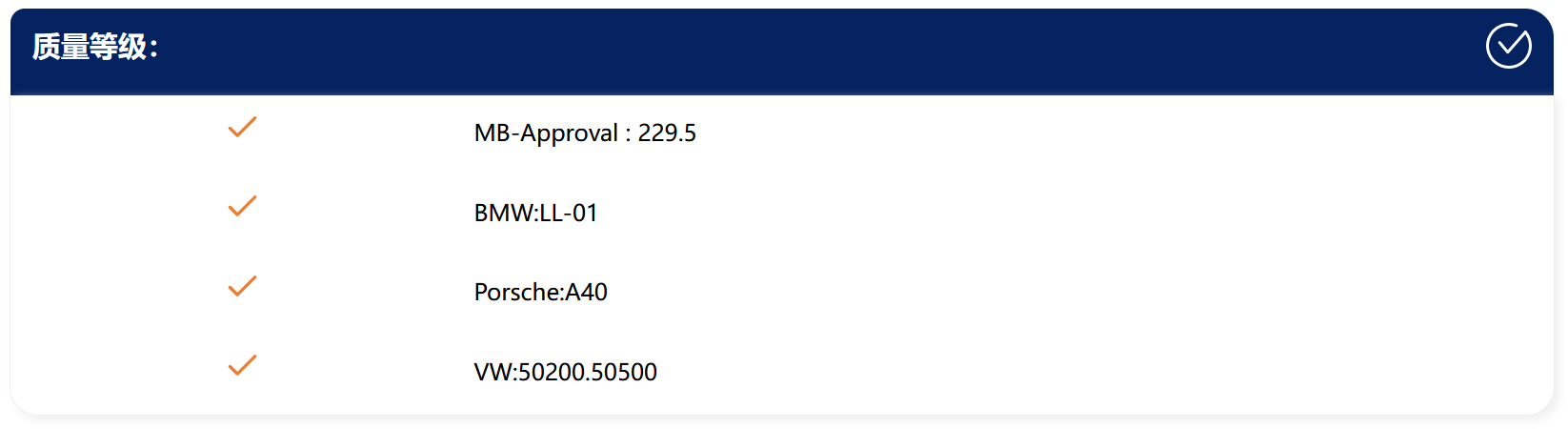 由我们公司提供的“SWEEP”品牌汽车服务用润滑油,完全符合相关国家、行业和相对应的汽车品牌生产厂家的质量标准(以原厂发动机用润滑油品的技术要求或权威第三方检测报告为准)!