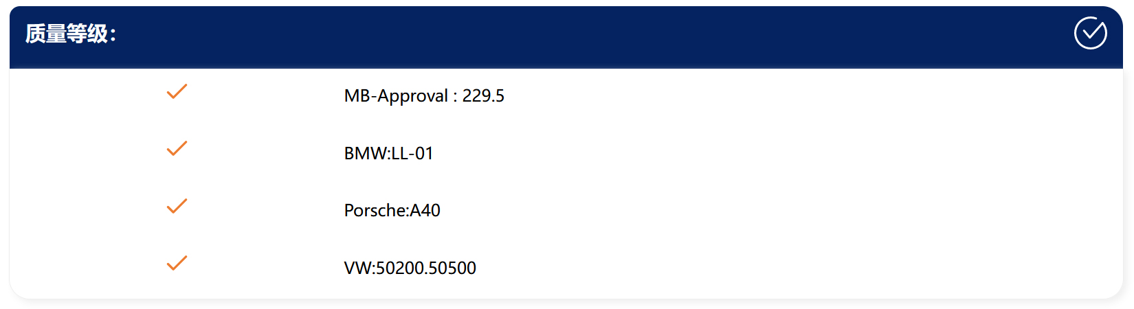 由我们公司提供的“SWEEP”品牌汽车服务用润滑油,完全符合相关国家、行业和相对应的汽车品牌生产厂家的质量标准(以原厂发动机用润滑油品的技术要求或权威第三方检测报告为准)!
