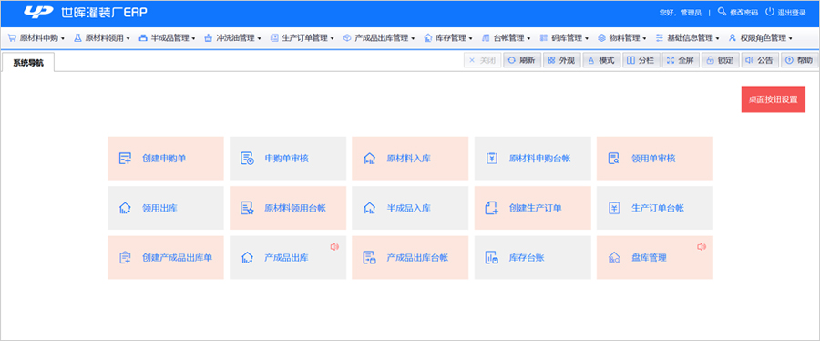 世晖科技企业级ERP系统,管理产品整个生产过程,涵盖原材料申购与领用、半成品管理、生产管理、销售管理、库存管理等模块的综合管理平台。