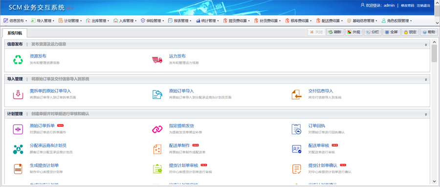 世晖科技SCM业务交互系统,管理商品从供应商生产到止运地收货的全部业务流程,涵盖计划管理、物流配送、产品防伪、报表统计、运费结算、保险管理、信息管理等模块的综合业务平台。