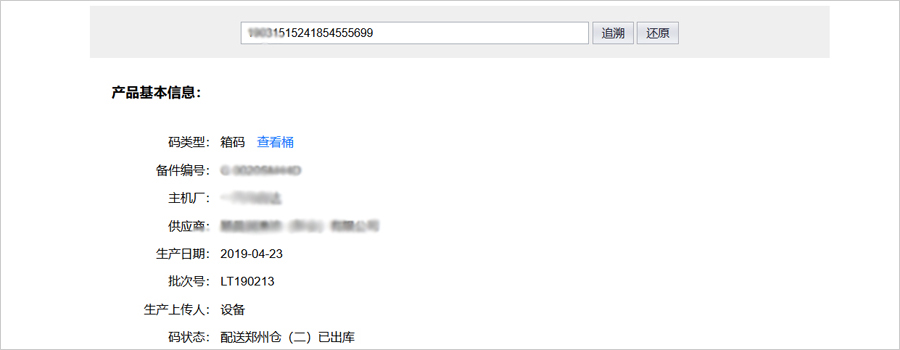 防伪系统除具备对产品的防伪验真功能外,还可以追溯产品的生产信息、物流信息等内容。包括产品的型号、生产时间、批次、入出库时间、入出库地点、各个环节的操作人等数据。并提供微信平台验真、网站验真、PDA设备追溯和系统后台追溯等功能。